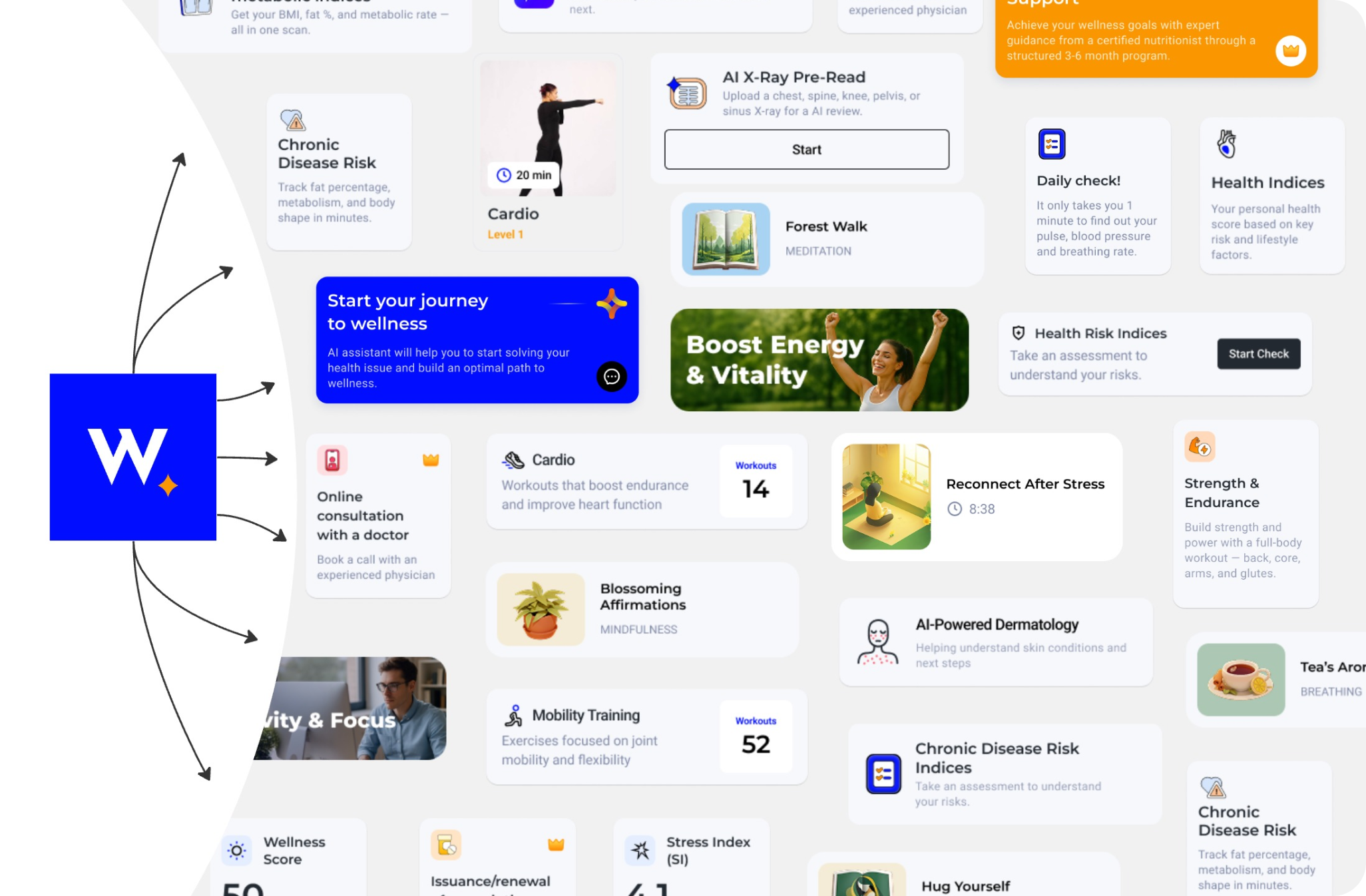 Based on your profile and assessment, WLLNSS builds a personalized plan and recommends the right services — adapting over time as your needs and progress change.
