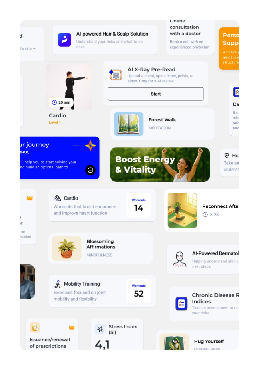Everything is in one place — mental health support, fitness programs, modern diagnostics, and access to medical experts.
